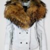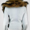 Women’s Motorcycle Biker Jacket with Detachable Raccoon Fur Collar And Piped Sleeves in White