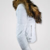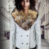 Specification- Snow white pure leather jacket with fox fur collar is now a trending outerwear option for the women. This stunning jacket with the quilt on shoulder and waist area is now available at Alen Cooper. Snap button closure and long quilted sleeves are there to add a sensational stylish look to the wearer.