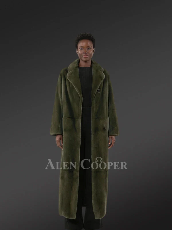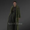 Women’s Olive Mink Long Coat