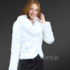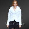 - Elegant women’s blazer of authentic rabbit fur in immaculate white shade