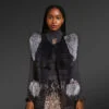 - Harmonious blend of black rabbit fur and Silver fox fur createsa striking contrast of textures and tones