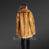 This exquisite womens Red fox fur coat exudes luxuriousness through its stunning looks and plush feel. It’s designed using full pelts of Red fox with a thick shawl style collar which turns into a stylish frontline. The extra long sleeves work as a shield against the cold wind and keep the hands warm.