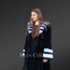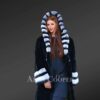 - Gorgeous rex rabbit fur bi-color coat for women with chinchilla fur lookalike