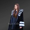 The rabbit fur body and sleeves in navy blue hold the optimum balance between function and fashion. However, luxury and comfort get pulled by the premium quality of fur and internal satin lining. However, skilled craftsmanship also contributes to the rise.Â