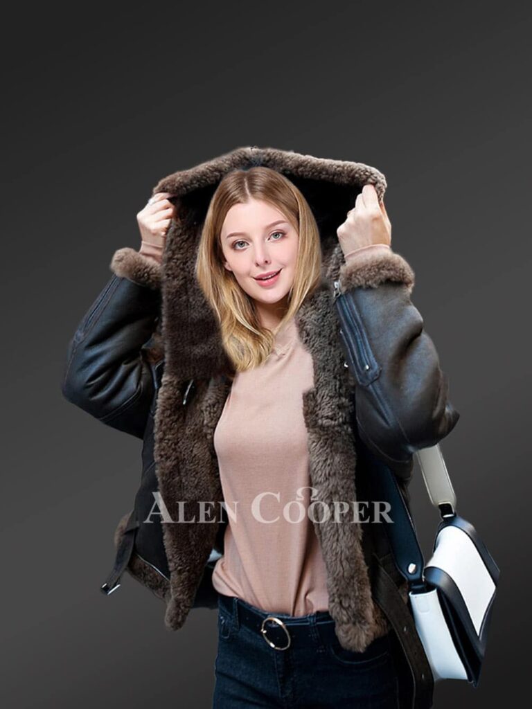 Delightful Qualities of Shearling Womens Jacket in Coffee color