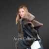 As can be seen, the hemline and cuffs of this jacket are accentuated by merino wool. In this innovative designing style, the borders of both sleeves as well as the hemline have been turned up and sewn. The buckled leather belt slightly above the hemline enables one to adjust the fit around one’s waist.