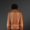 This posh shearling jacket with semi-aniline finish looks fascinating in tan shade.It can always make a woman look chic whether it’s a branch, a shopping day, a date-night, a party or a get-together. It brings the dual warmth of sheepskin leather and woolen interior. The air trapped inside the woolen fiber work as an insulator and prevents the loss of body-heat or ingress of cold from the air. Additionally, the lambskin leather doesn’t let the chilled air pass through the jacket.