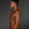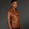 Keep toasty warm in style with this Tan Biker Leather Jacket for Women, which can be worn with jeans and a chic purse. This jacket is also ideal for gift-giving. It comes in a variety of sizes to accommodate ladies of different heights and body shapes. It is portable and lightweight. The exquisite craftsmanship may be found across the whole range. It is strong and has a long lifespan due to the amazing attention applied to its design, making it a good investment.
