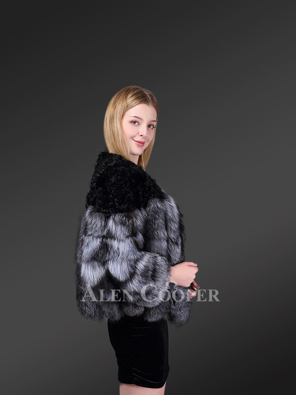 Womens Fox Fur Short Coat With Accentuated Shoulder