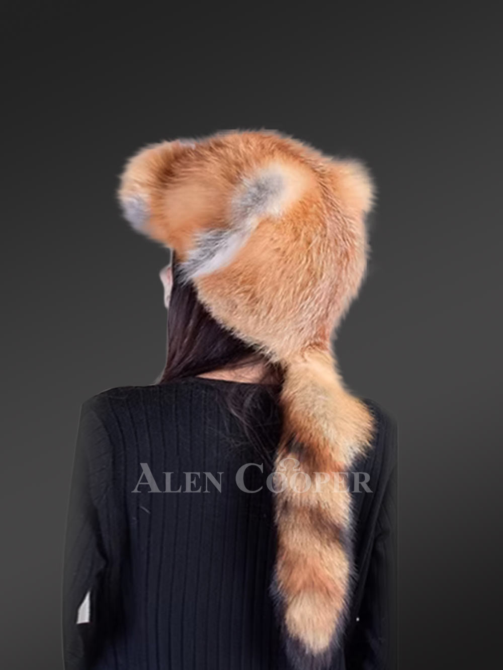 Full Ref Fox Fur Hat with Tail Back