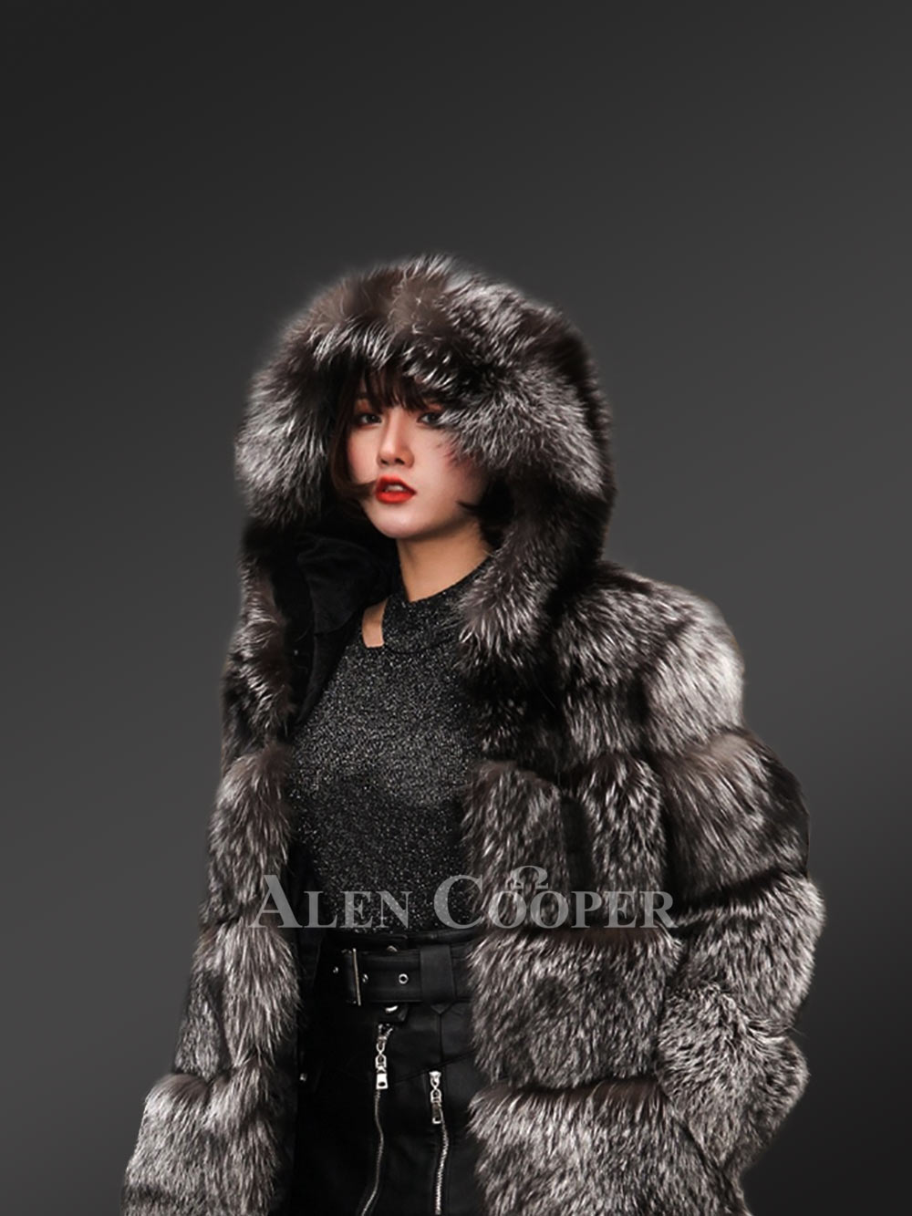 Womens Fox Fur Coat with Hood for Warmth and Style in Winter