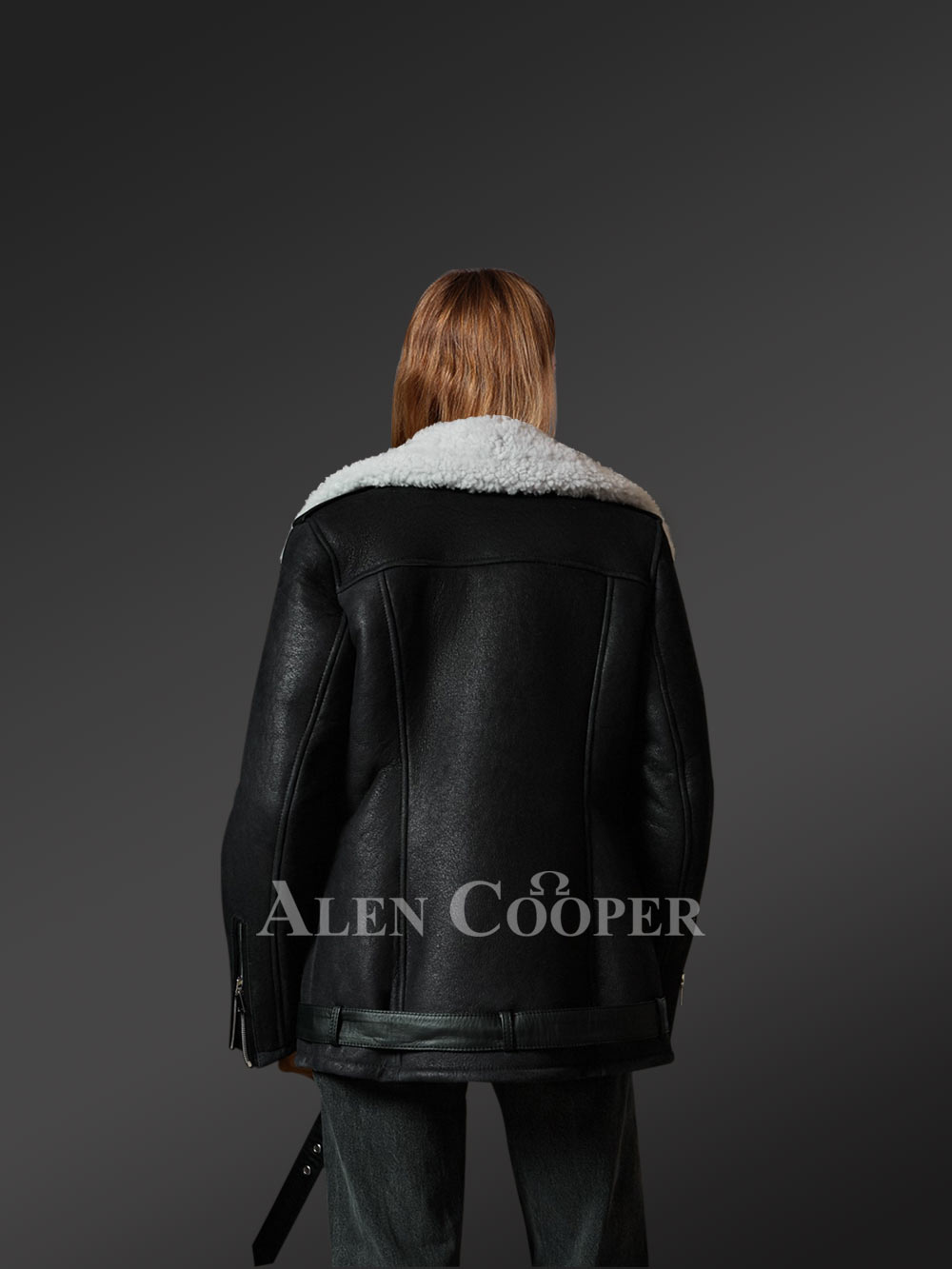 Black Sheepskin Shearling Jacket with White Wool Detailing