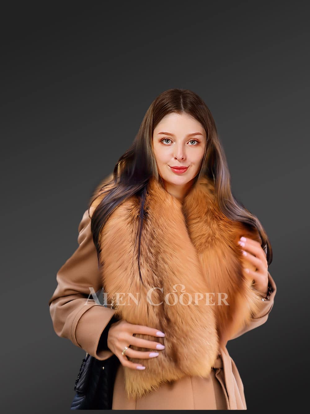 Woolen Coat for Women With Fox Fur Lapel – Sophistication At Its Peak