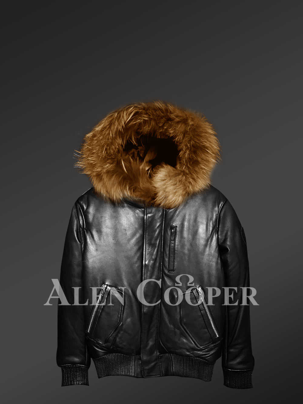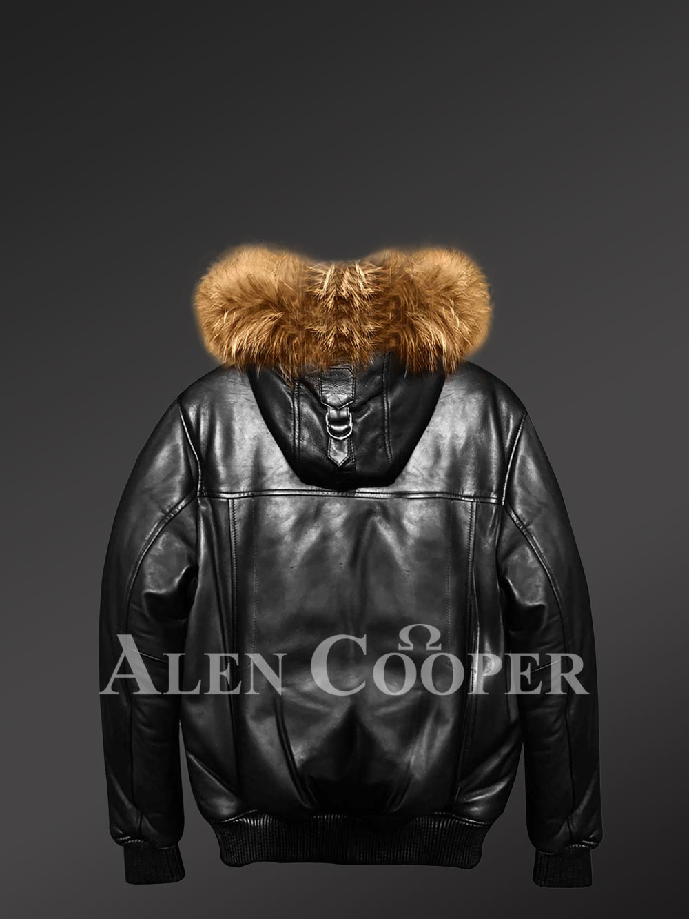 Men’s Zipout Hooded Bomber with Fox Fur Trim