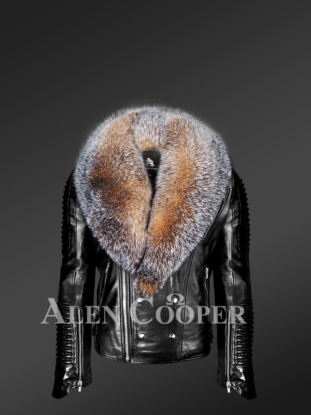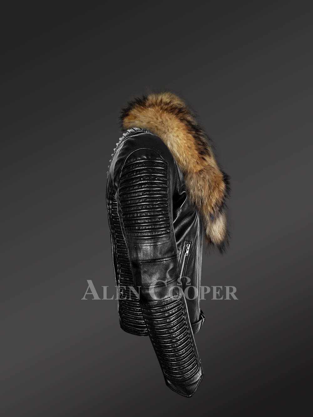 Black Biker Jacket with Raccoon Lapel – Be a Trendsetter