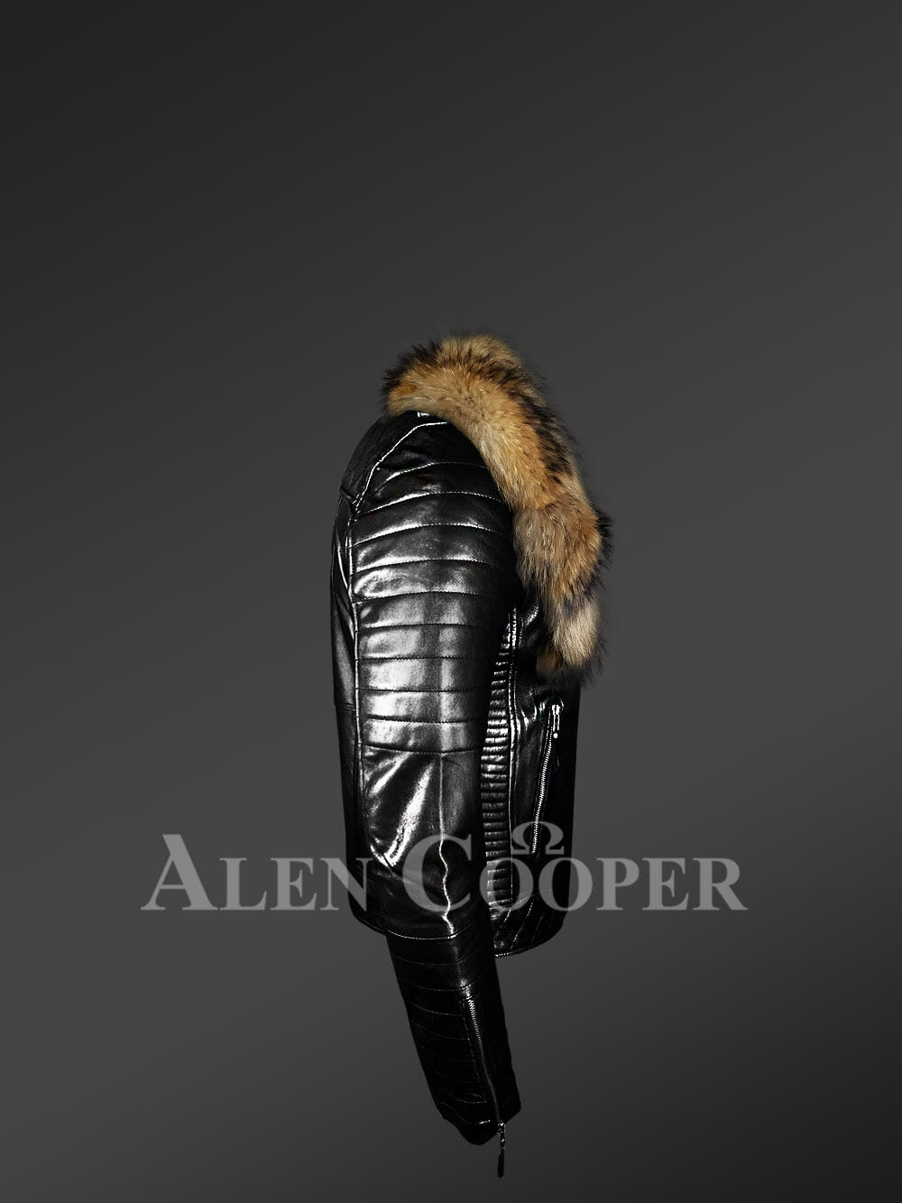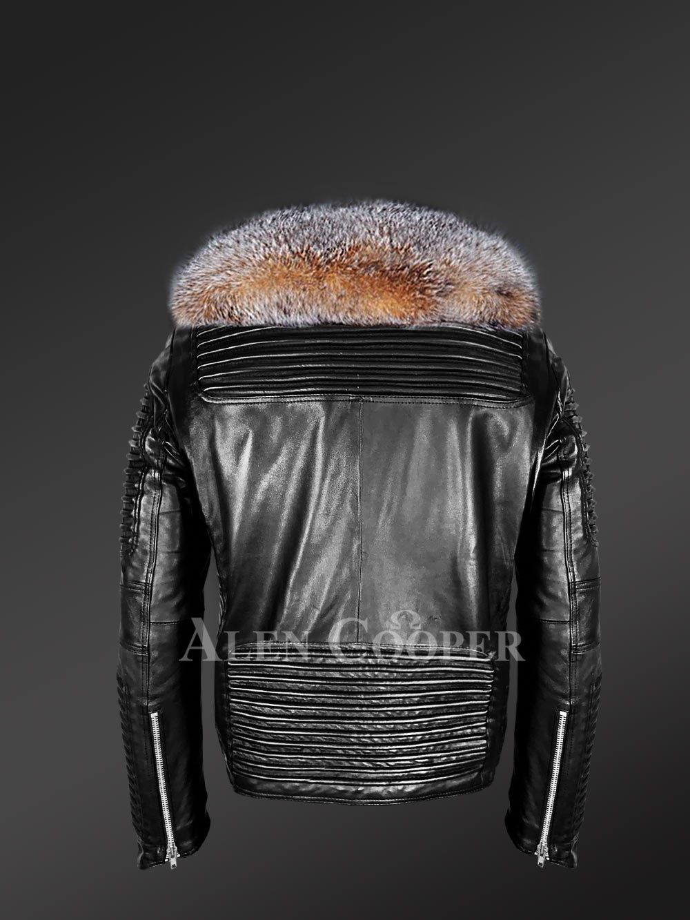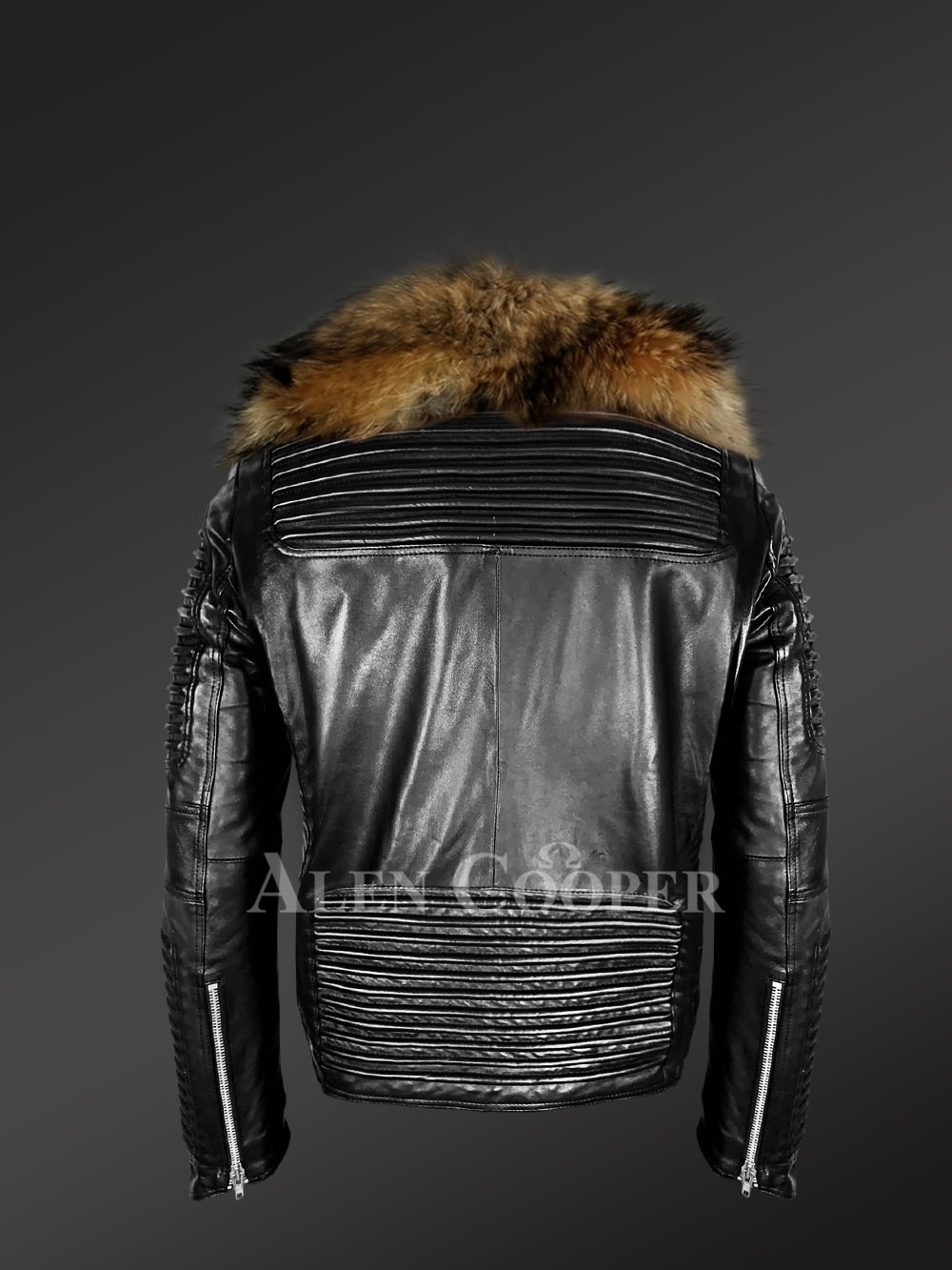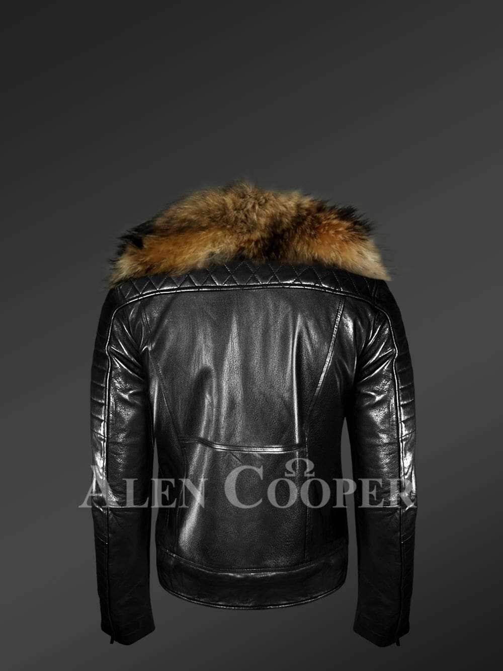 Men’s Leather Jacket with Chic Finn Raccoon Fur Collar