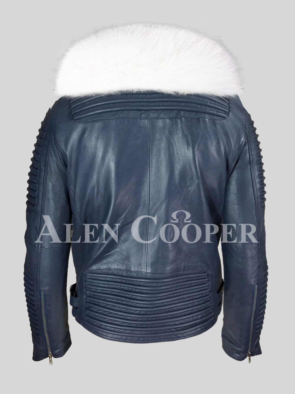 All-Occasion Detachable Scandinavian Crystal Fox Fur Biker Jackets for Men