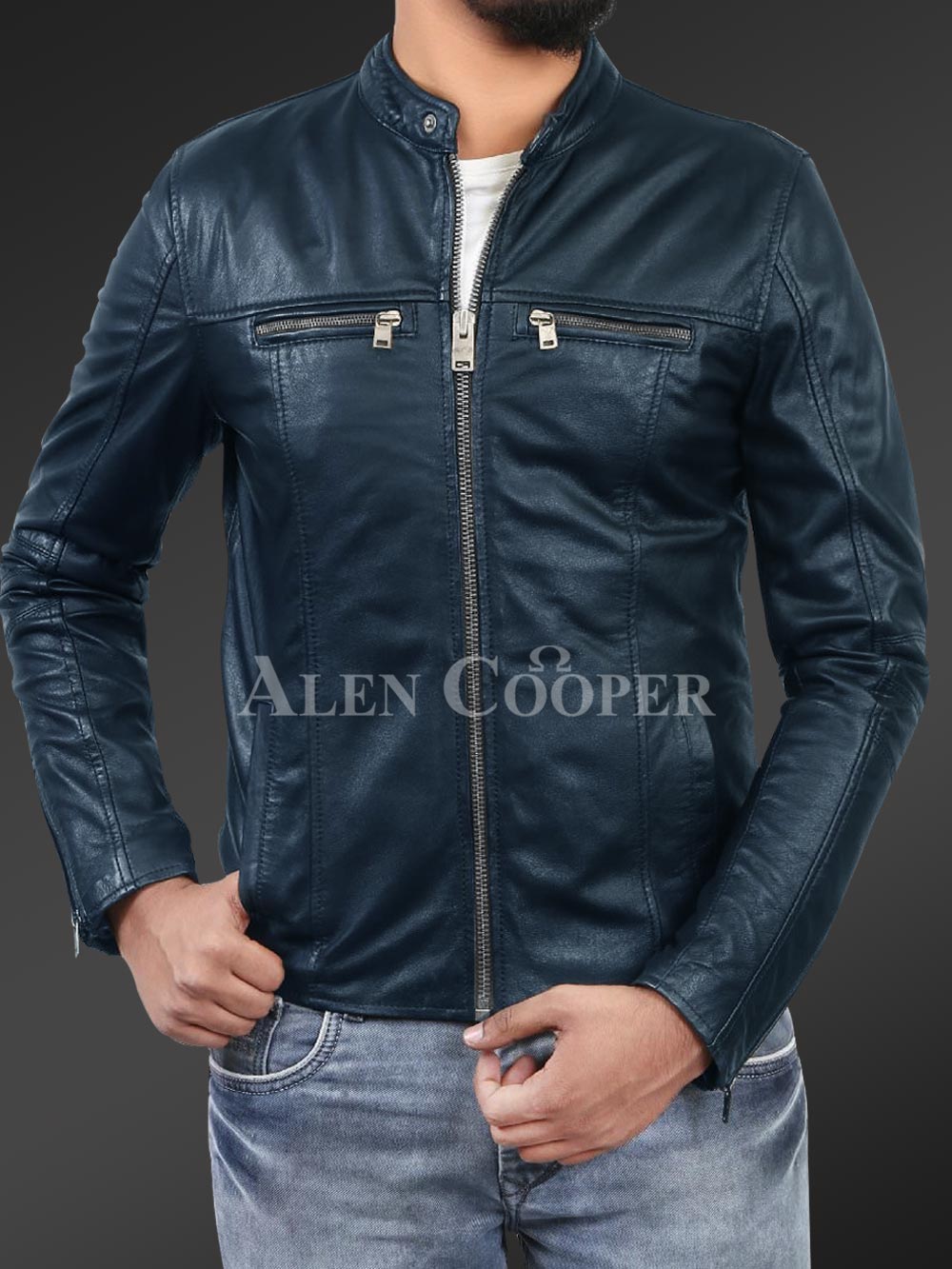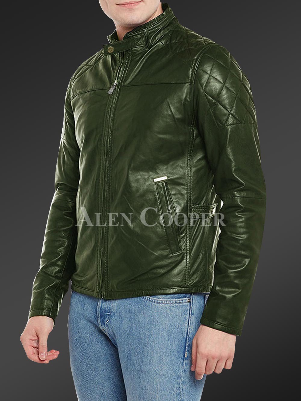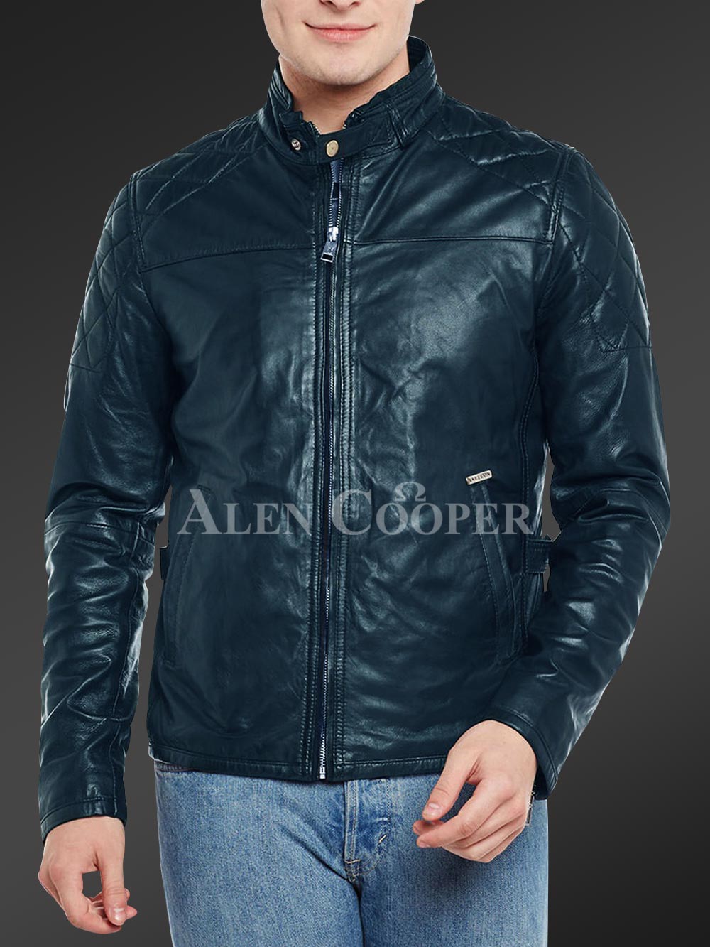 Men’s Iconic Black Short Real Leather Jacket with Quilted Shoulder