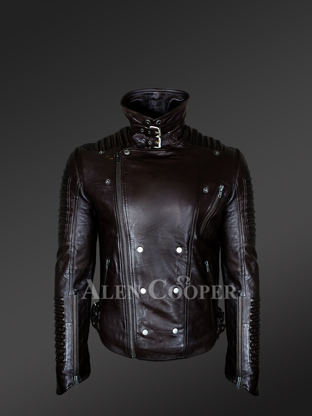 Classy and Tasteful Italian-Finish Leather Jacket in Coffee for Men