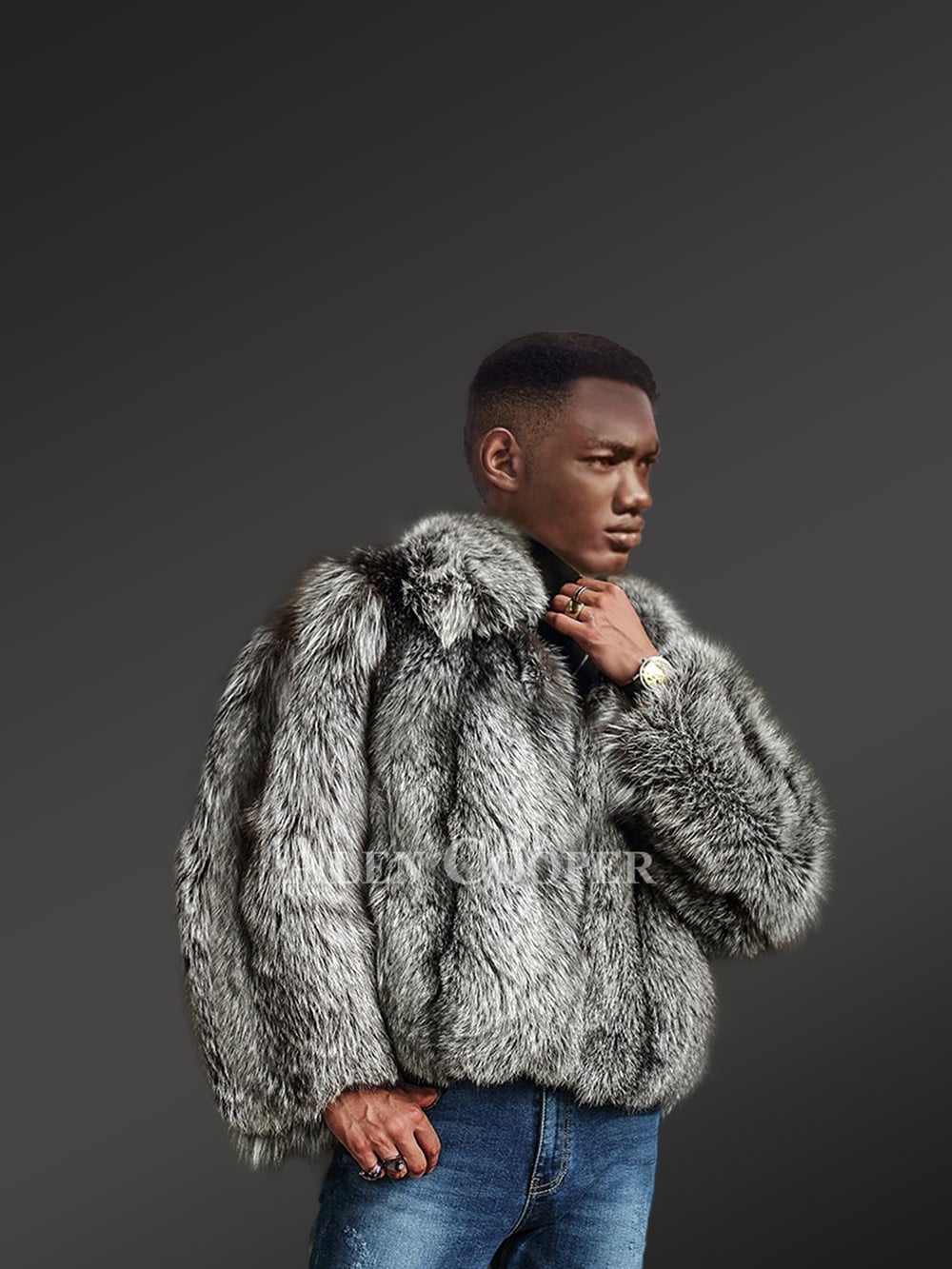 Mens Silver Fox Bomber Jacket for Incredible Warmth & High-Fashion Looks