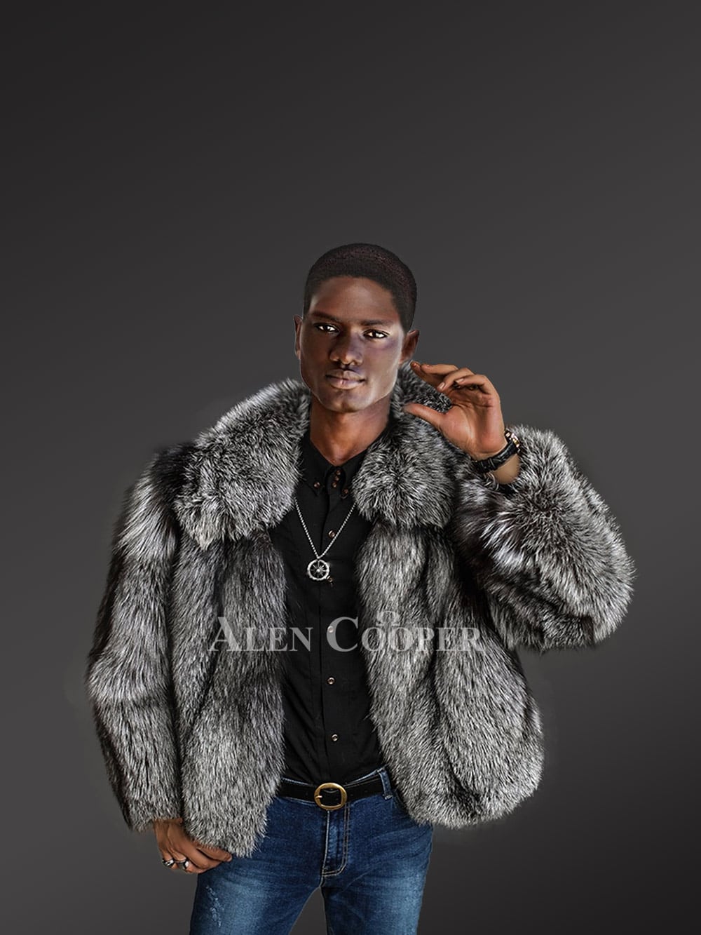 Men’s Silver Fox Fur Bomber Jacket Is Appealing and Luxurious
