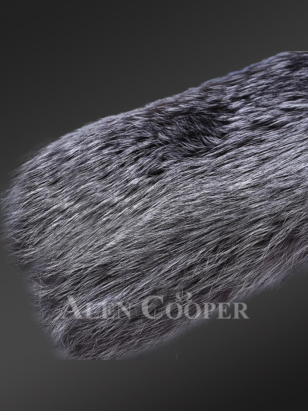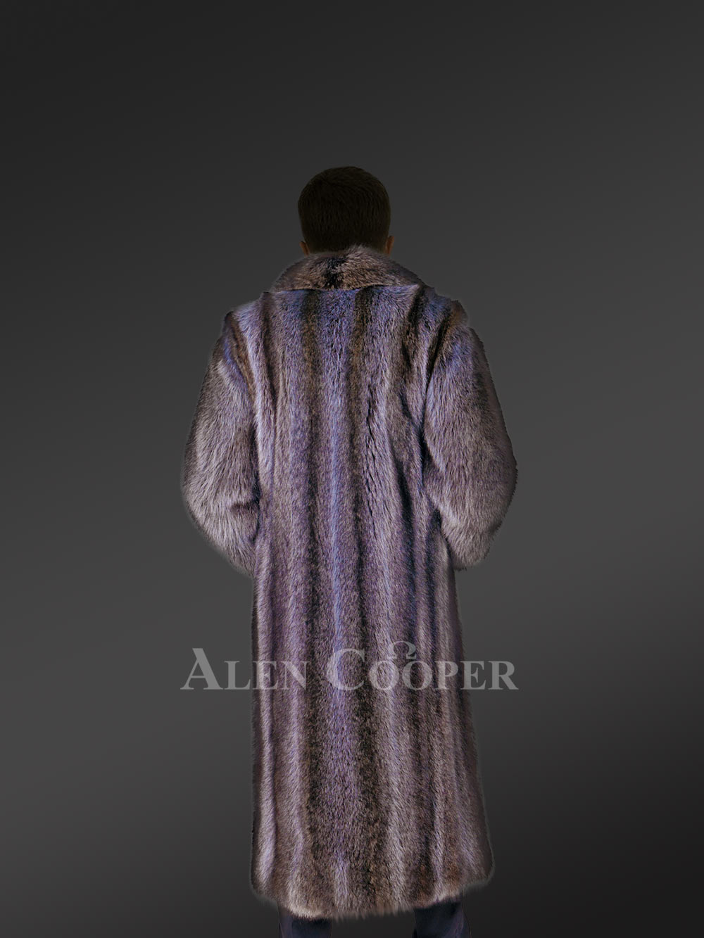 Racoon Fur Long Coat for Men in Grey-Brown with Collar is Soft and Supple