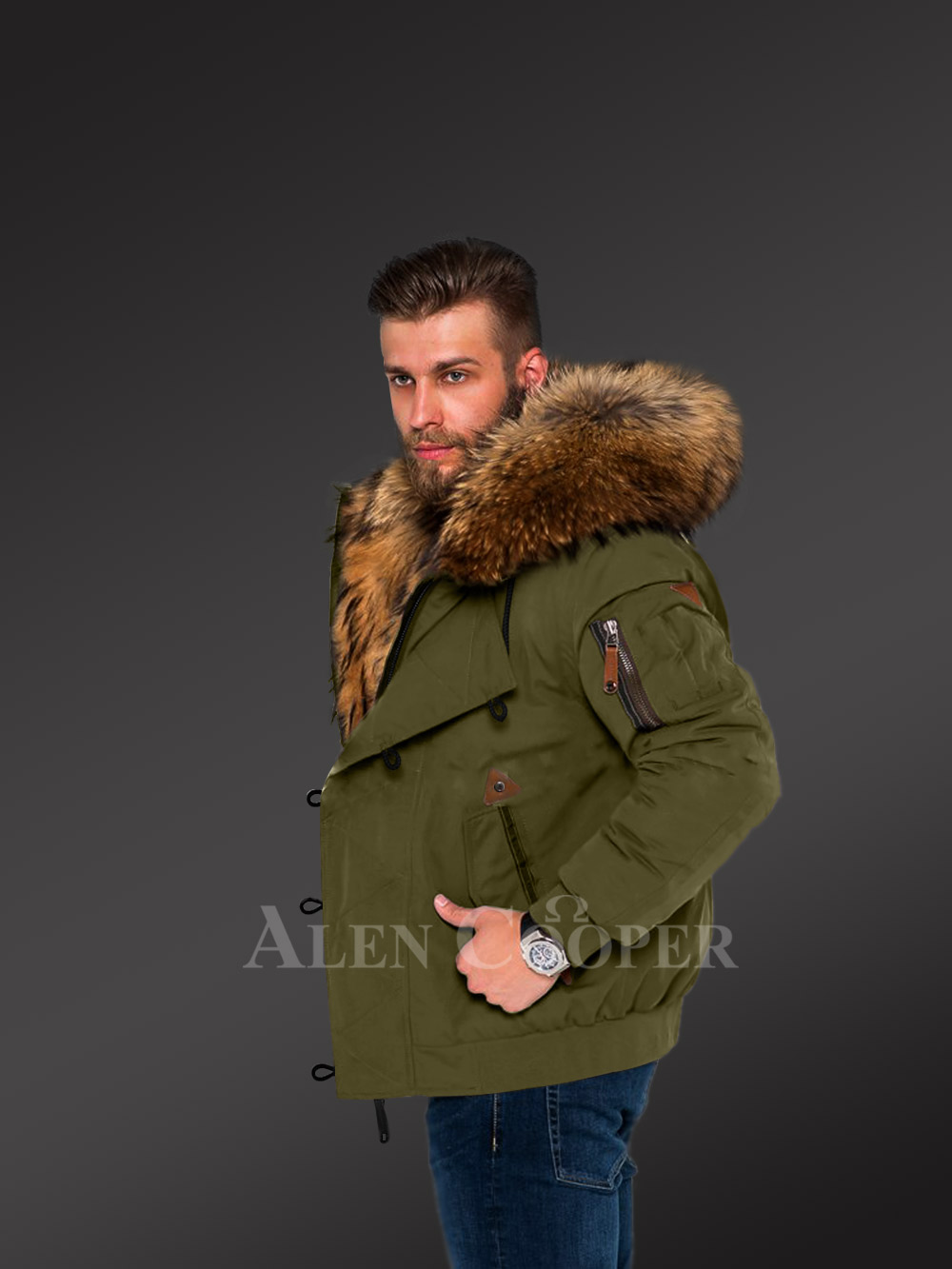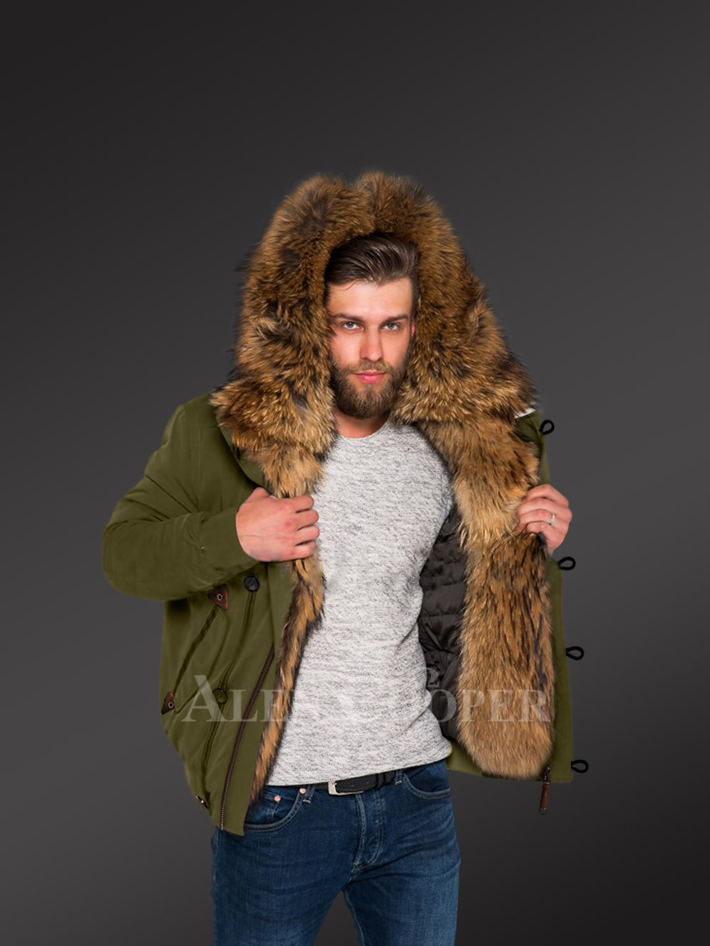 Finn Raccoon Fur Hybrid Green Parkas for Trendy and Elegant Men