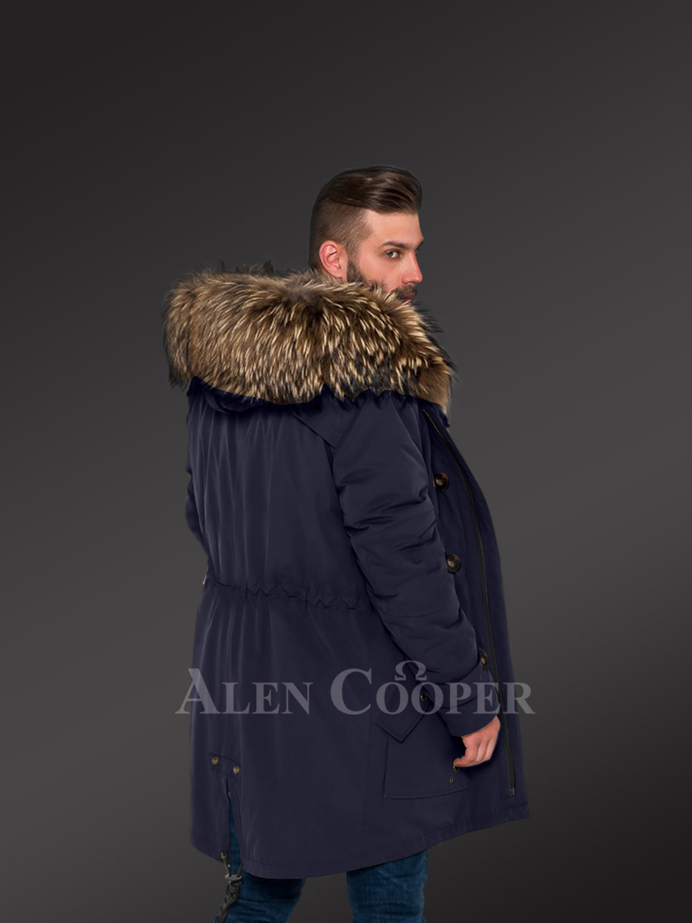 Men’s Hybrid Navy Finn Raccoon Fur Parka Convertibles to Reinvent Charm and Smartness with Rabbit Liner