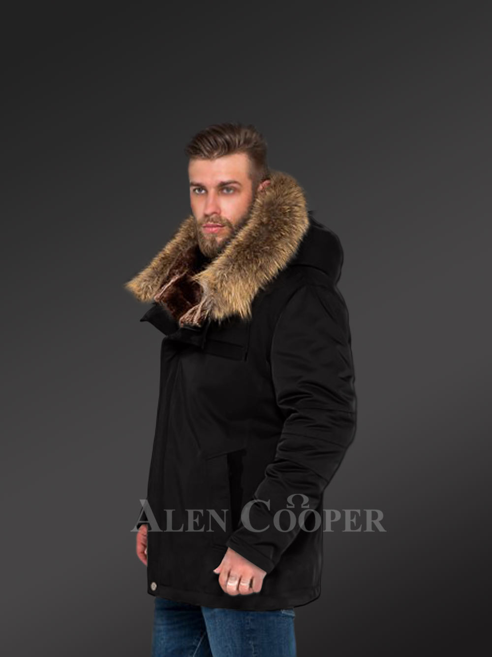Blazing Fashion Trend with Men’s Hybrid Black Finn Raccoon Fur Parka Convertibles