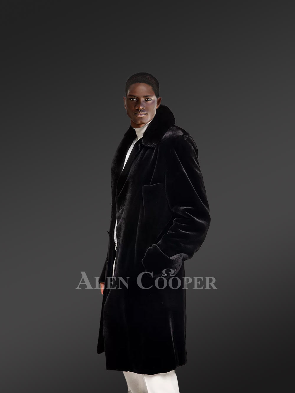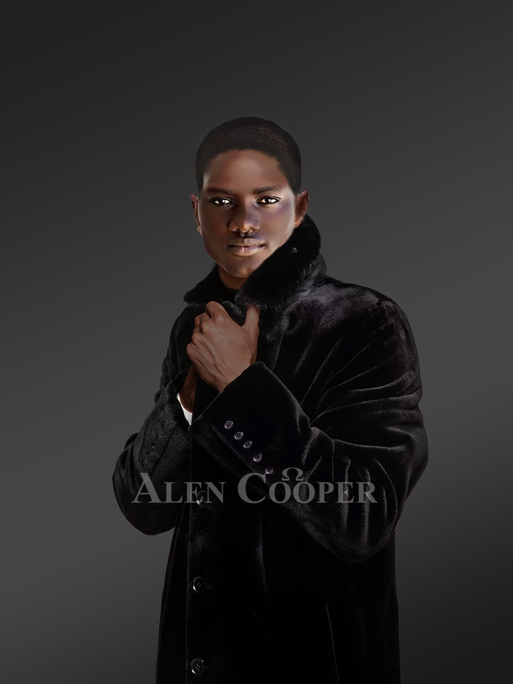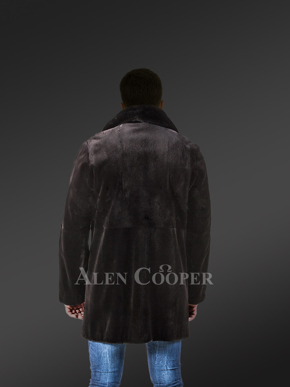 Men’s Mahogany Brown Reversible Real Full Skin Mink Fur Straight Warm Winter Coat