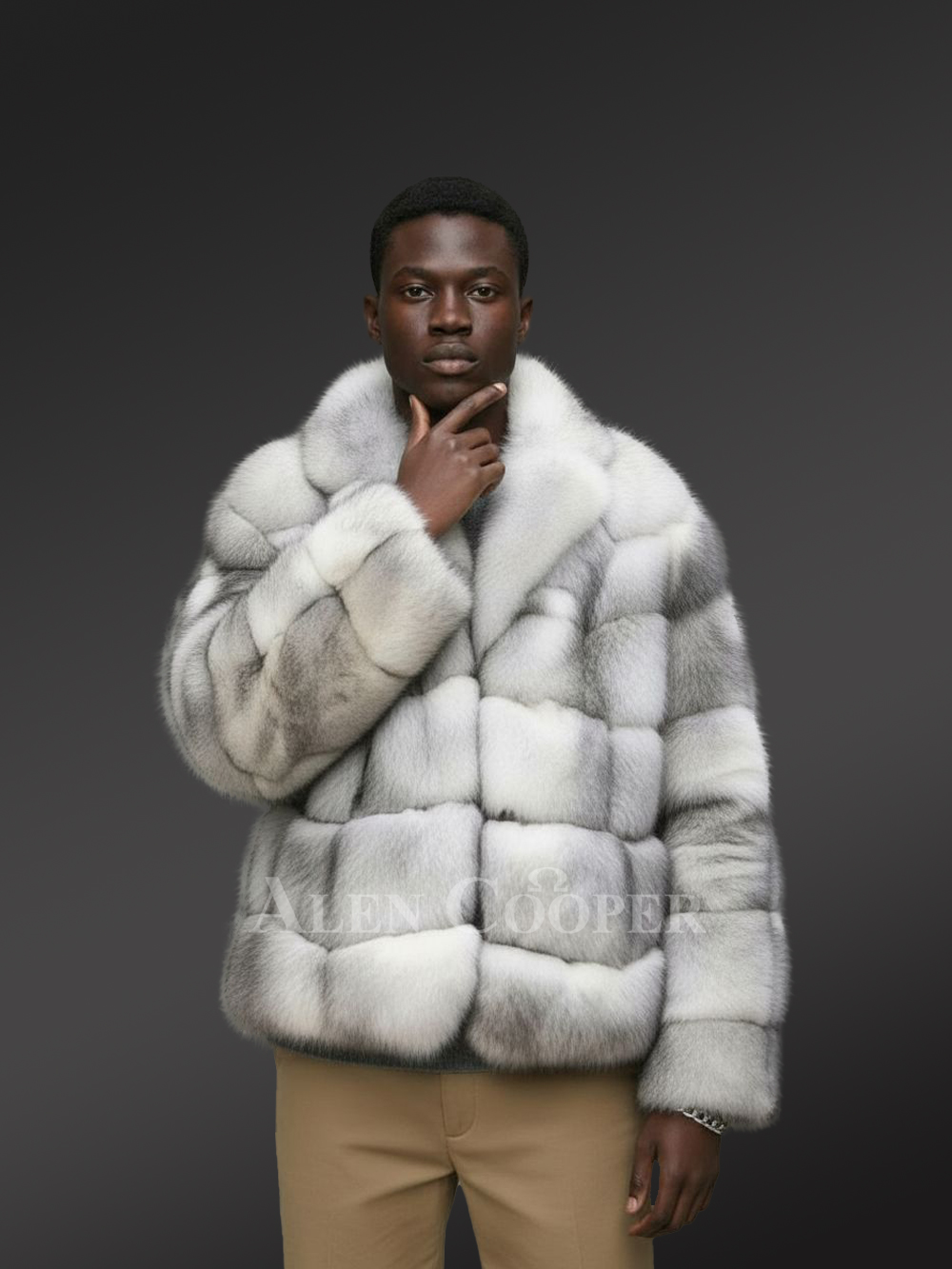 Mens Blue Fox Fur Coat for Luxurious Wearing Experience