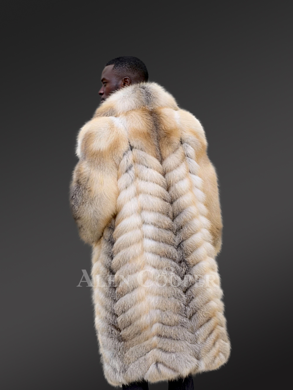 Mens Long Fox Fur Stroller Coat Featuring Herringbone Pattern