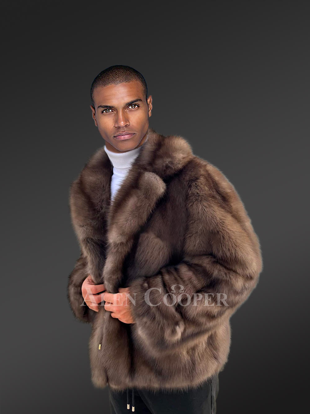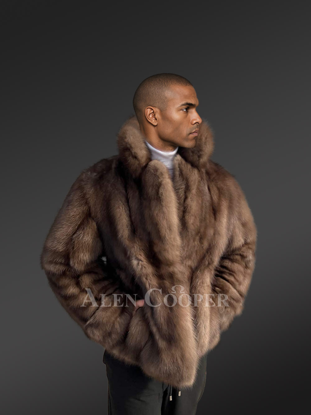 Men’s Trendy Short Sable Bomber Jacket in Natural Look