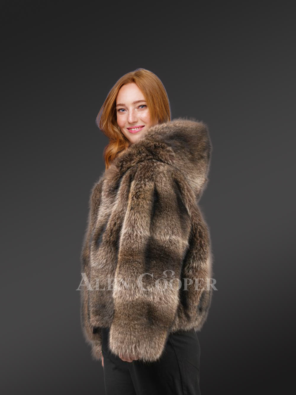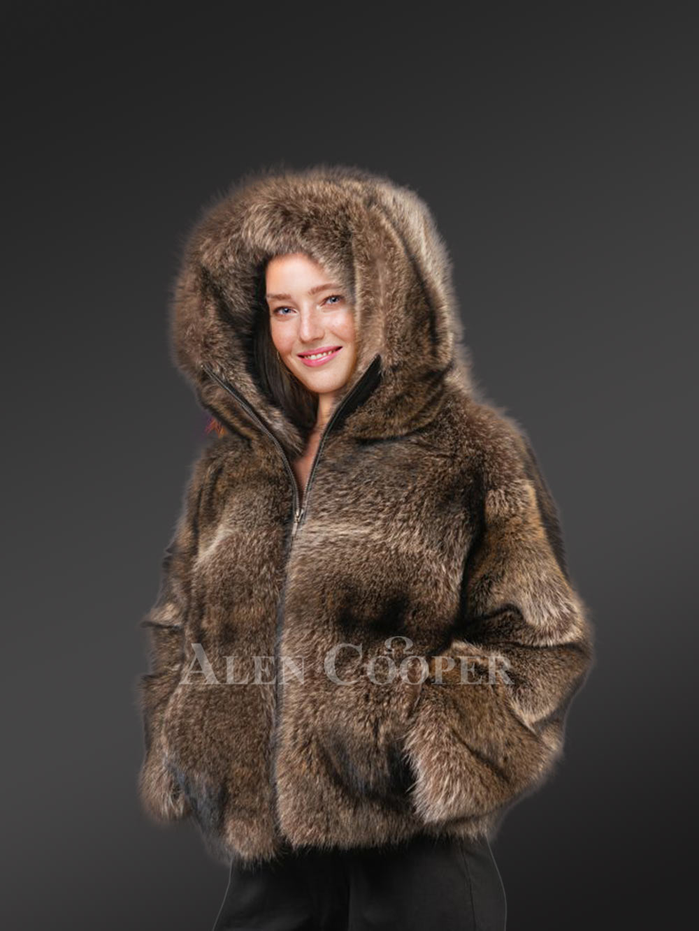 Women’s Natural Rabbit Fur Bomber with Hood