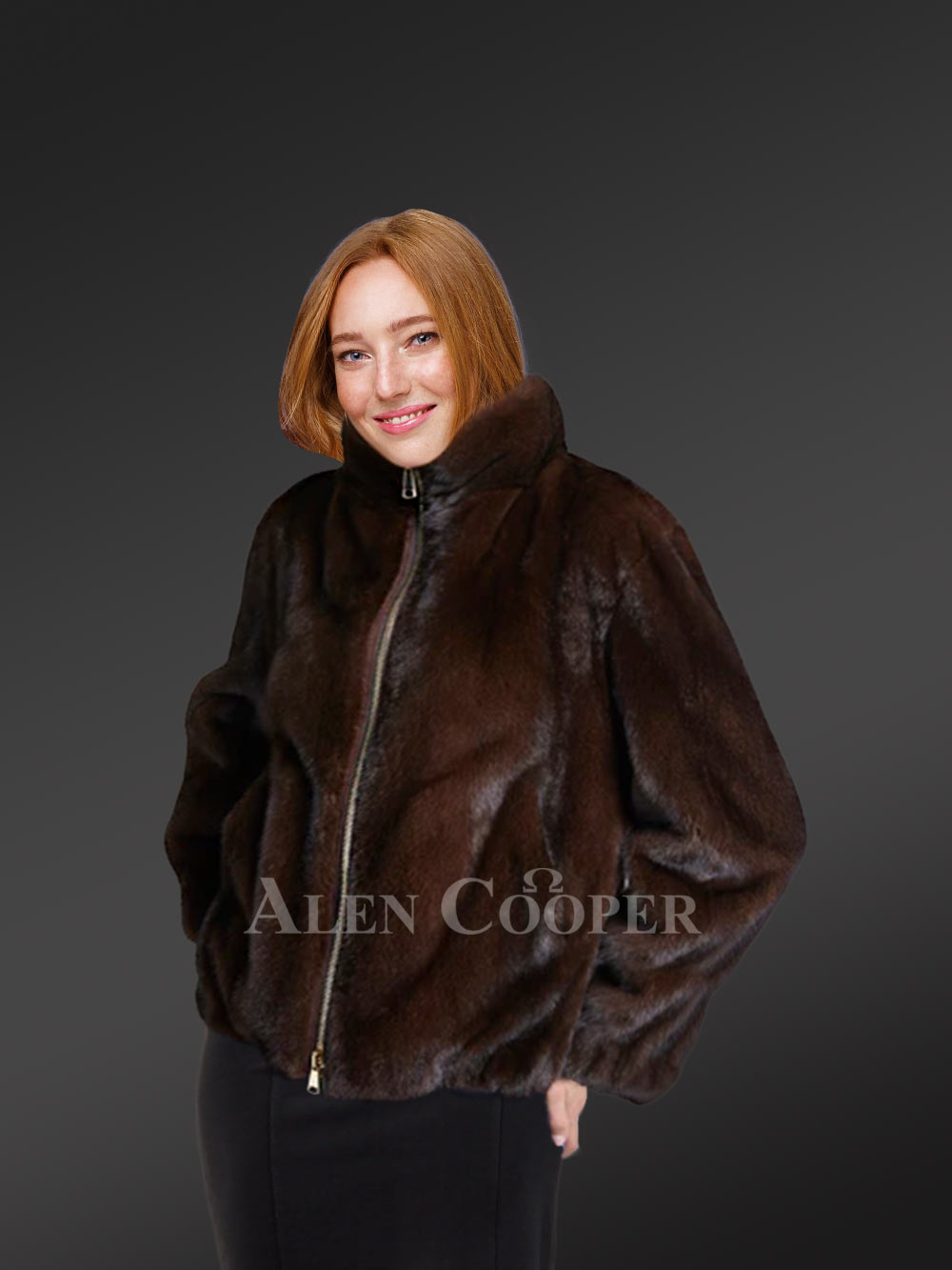 Womens Brown Mink Bomber – Chic Looks with Comforting Touch of Mink Fur