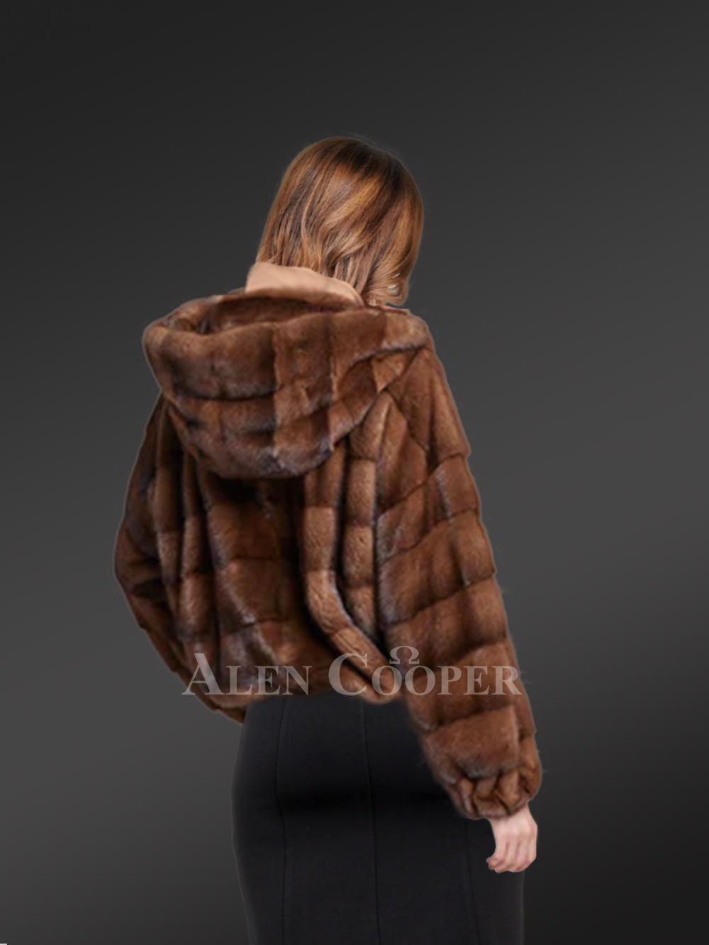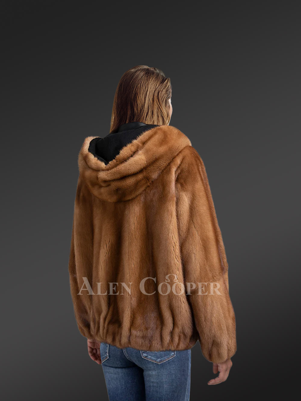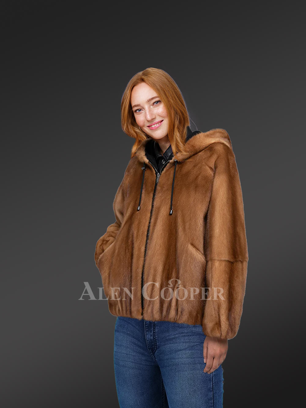 Reversible Mink Fur Bomber Jacket with Hood for Women
