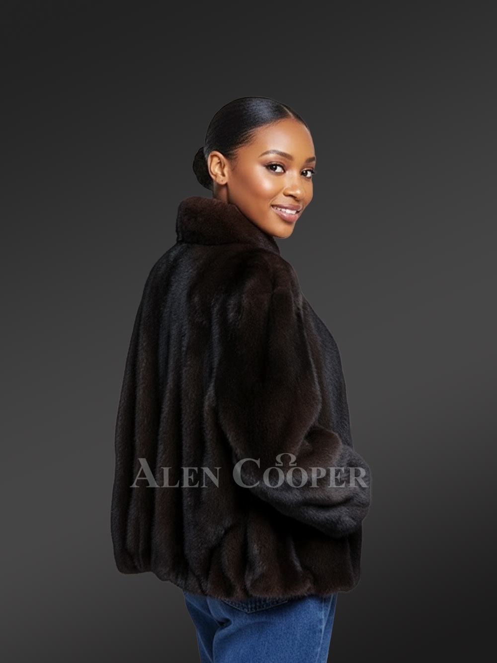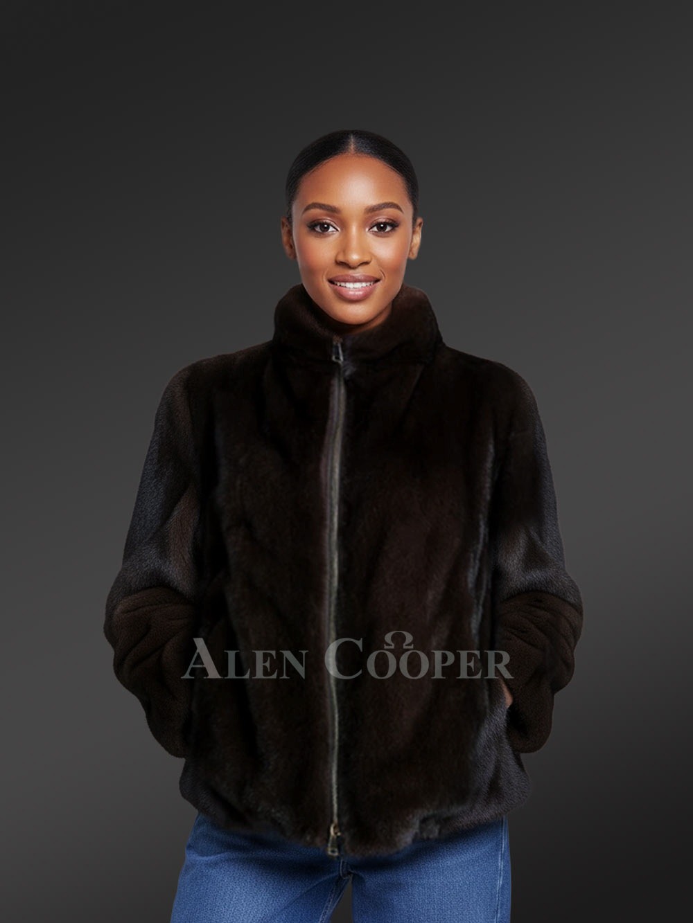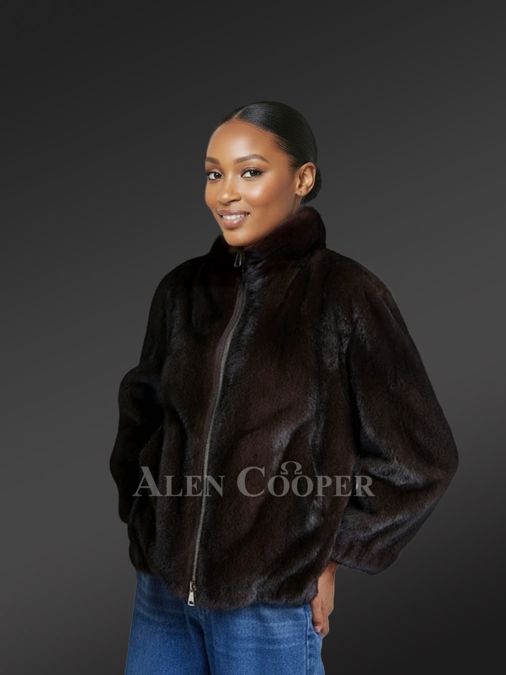 Womens Brown Mink Bomber – Chic Looks with Comforting Touch of Mink Fur