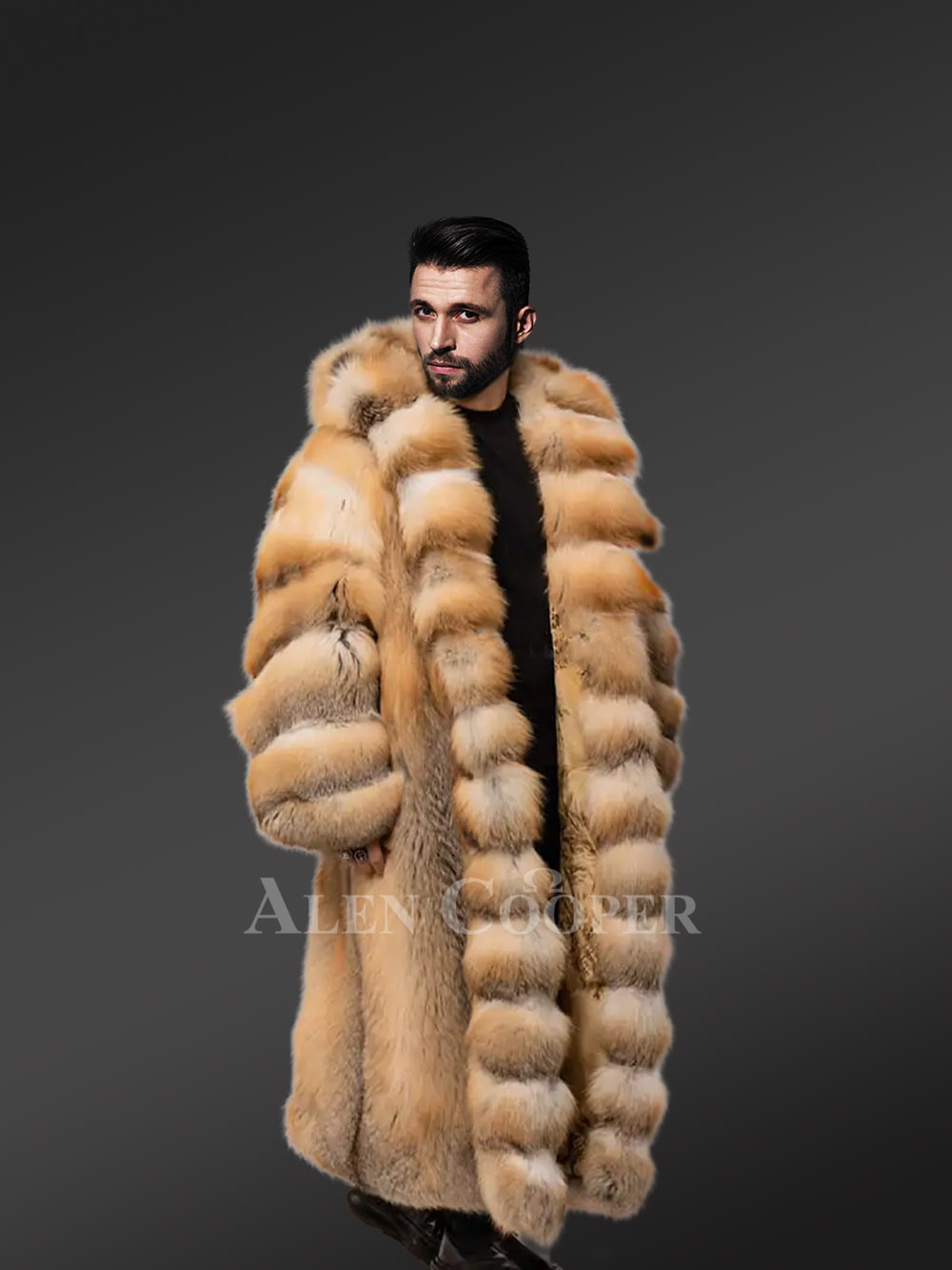 Red Fox Fur Tuxedo Coat Flaunting a Flamboyant Look for Men