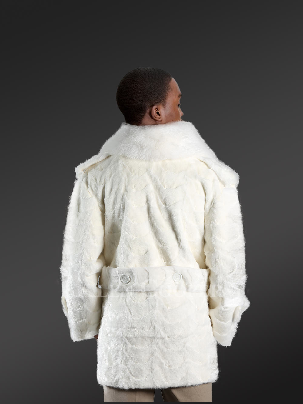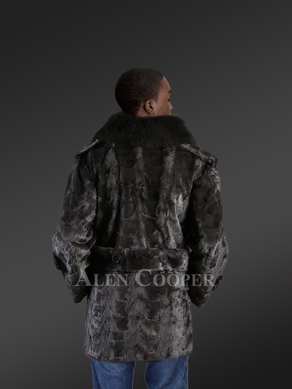 Mens Mink Pea Coat with Fox Fur Collar- A Classic Comfy Warm Wear