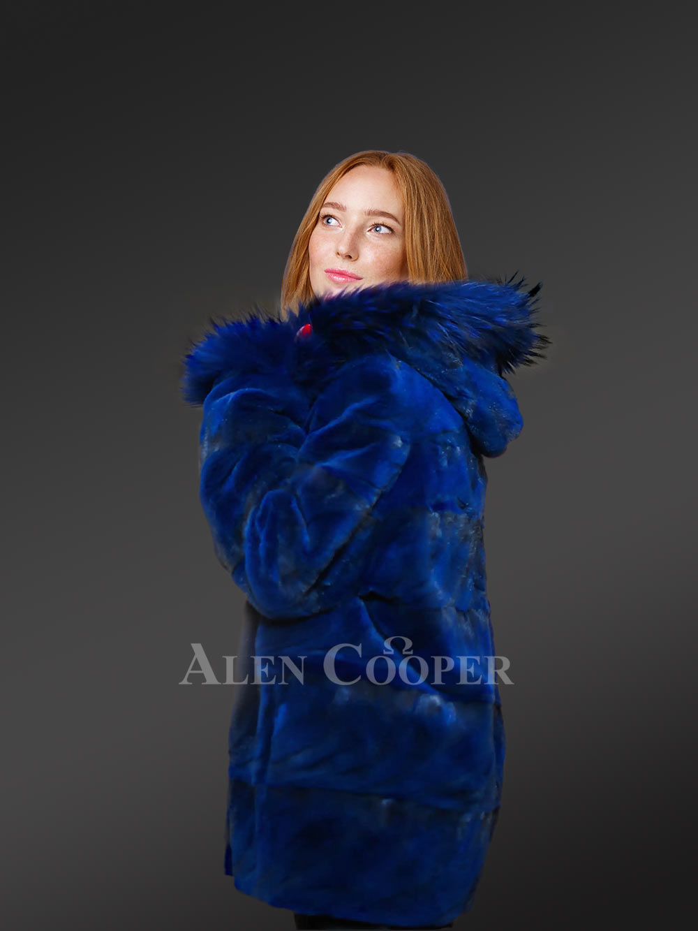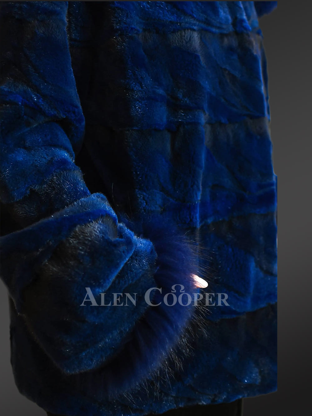 Womens Mink Blue Coat with Fox Fur brings Unparallel Charm and Warmth
