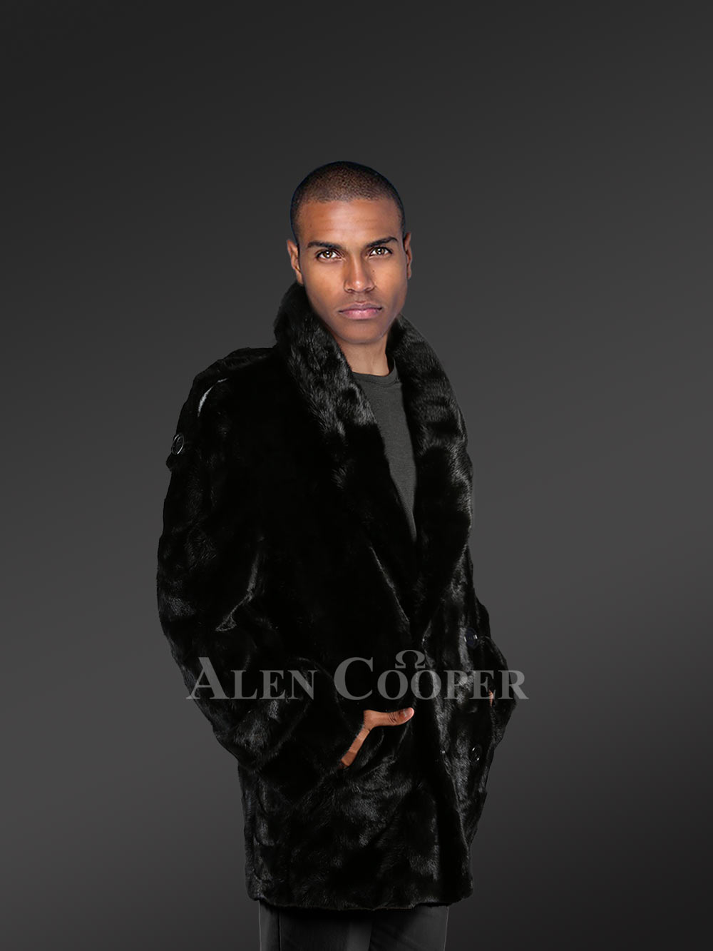 Mens Mink Pea Coat with Fox Fur Lapel – Classy Looks with Comfort