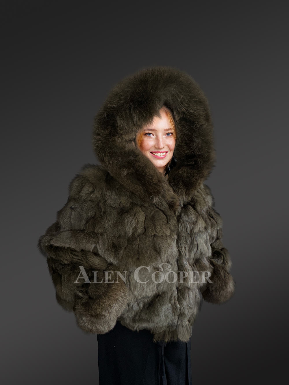 Womens Green Fox Fur Bomber Jacket–Indulge in Luxurious Touch & Feel
