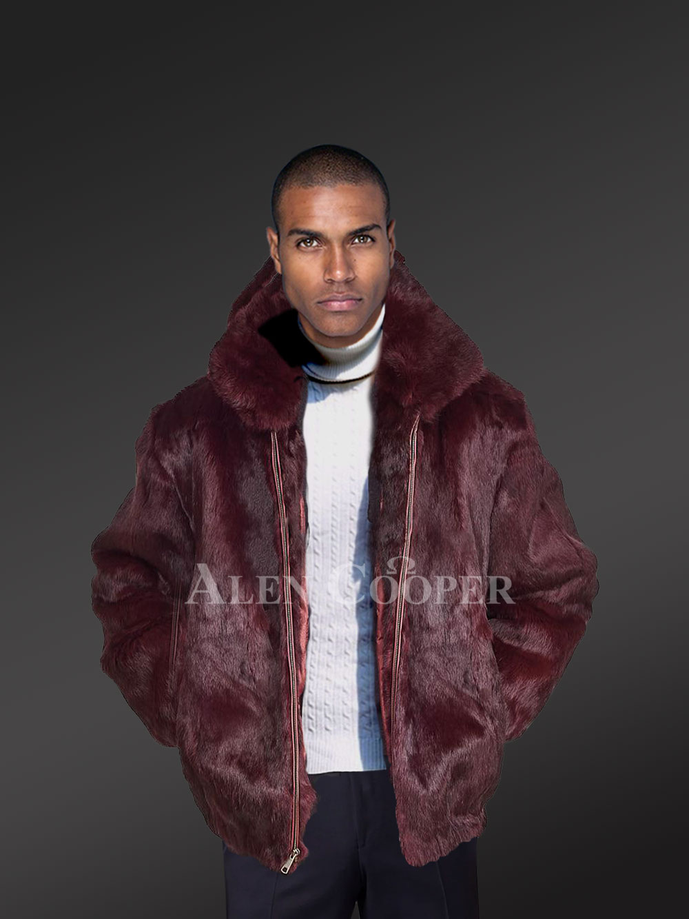 Rabbit Fur Bomber Jacket Men with Detachable Hood