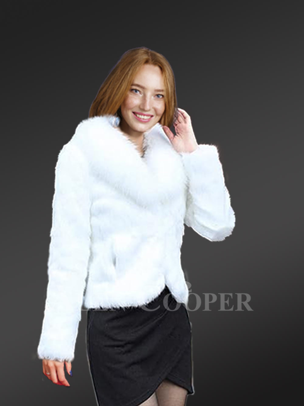 Womens Rabbit Vest With Fox Fur Accent on Shoulders and Pockets