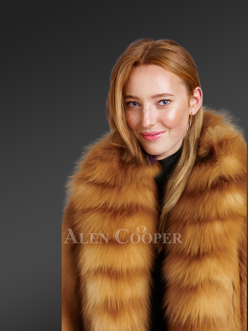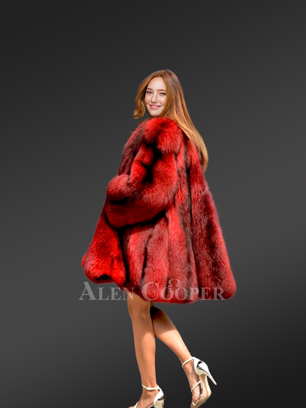 Womens Red Fox Fur Coat Looking Regal With Natural Beauty