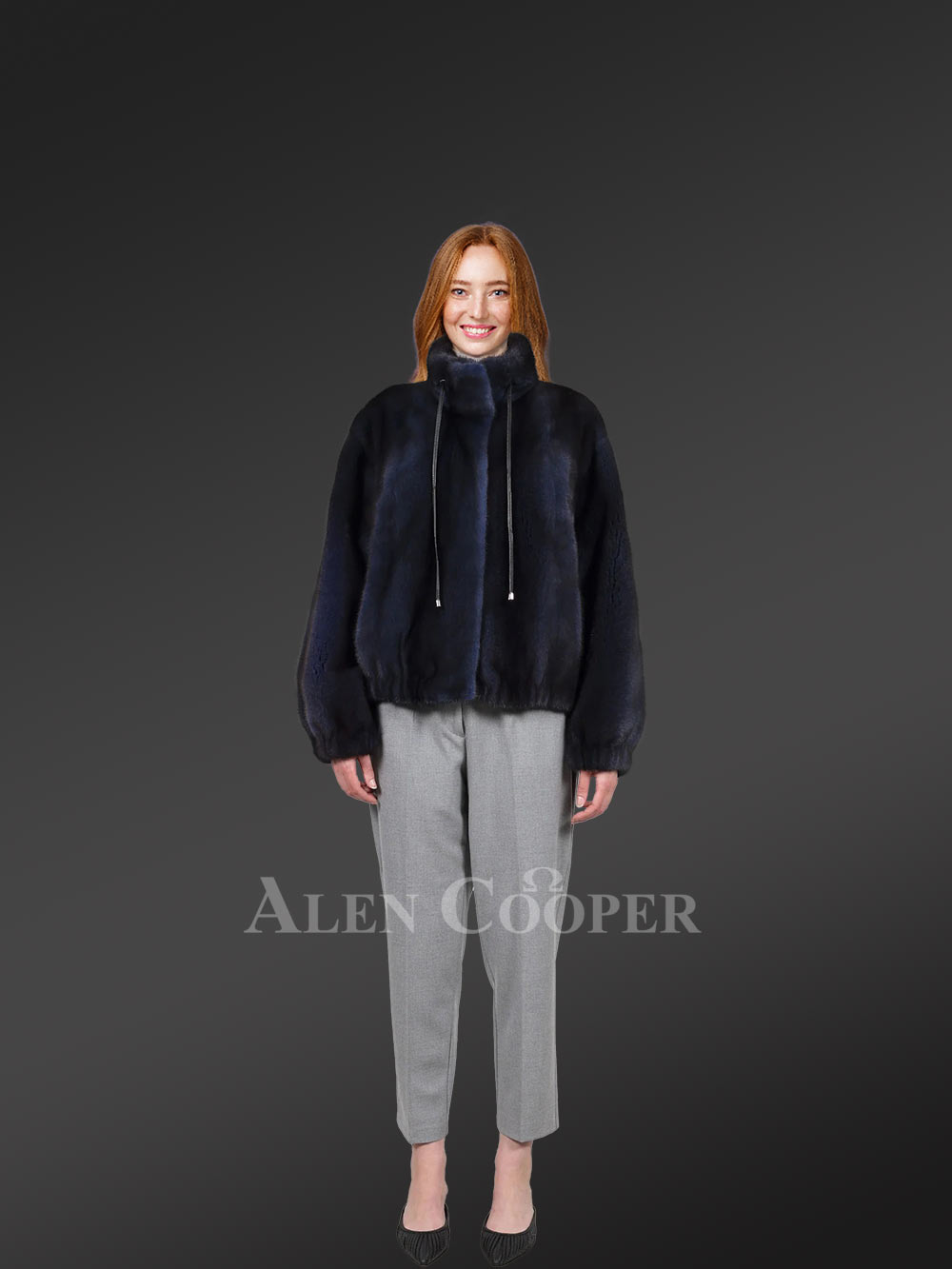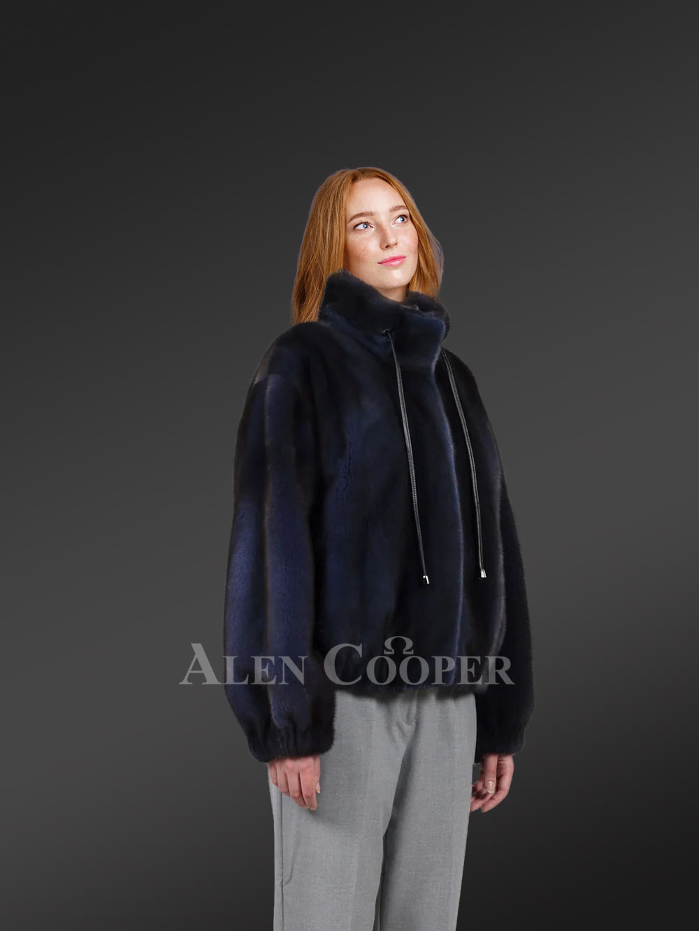 Blue Mink Bomber with Turtleneck Collar – Exceptional Warmth & Great Looks