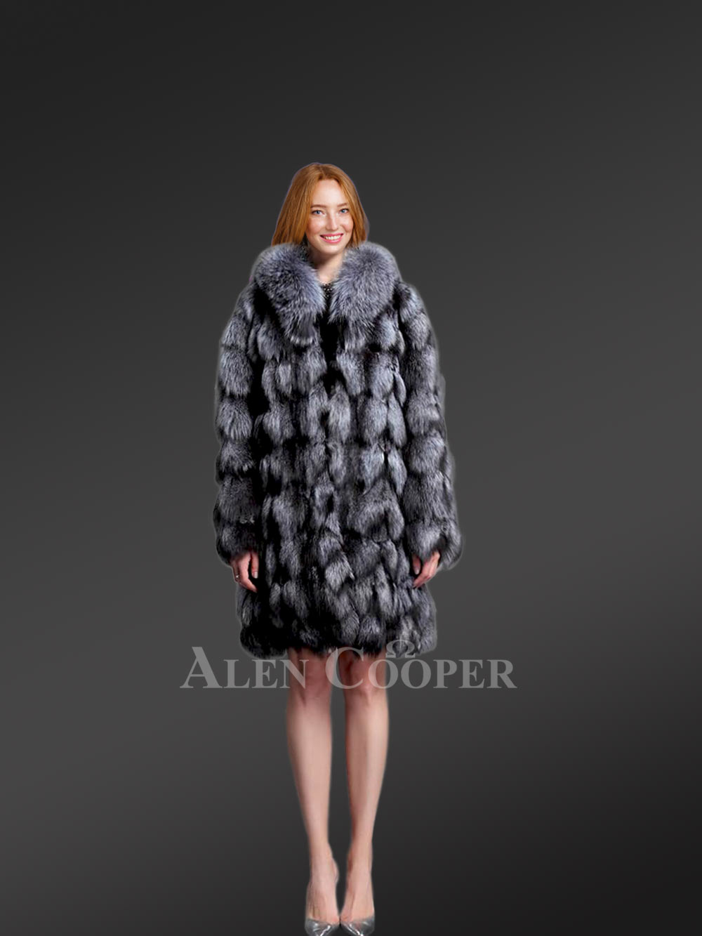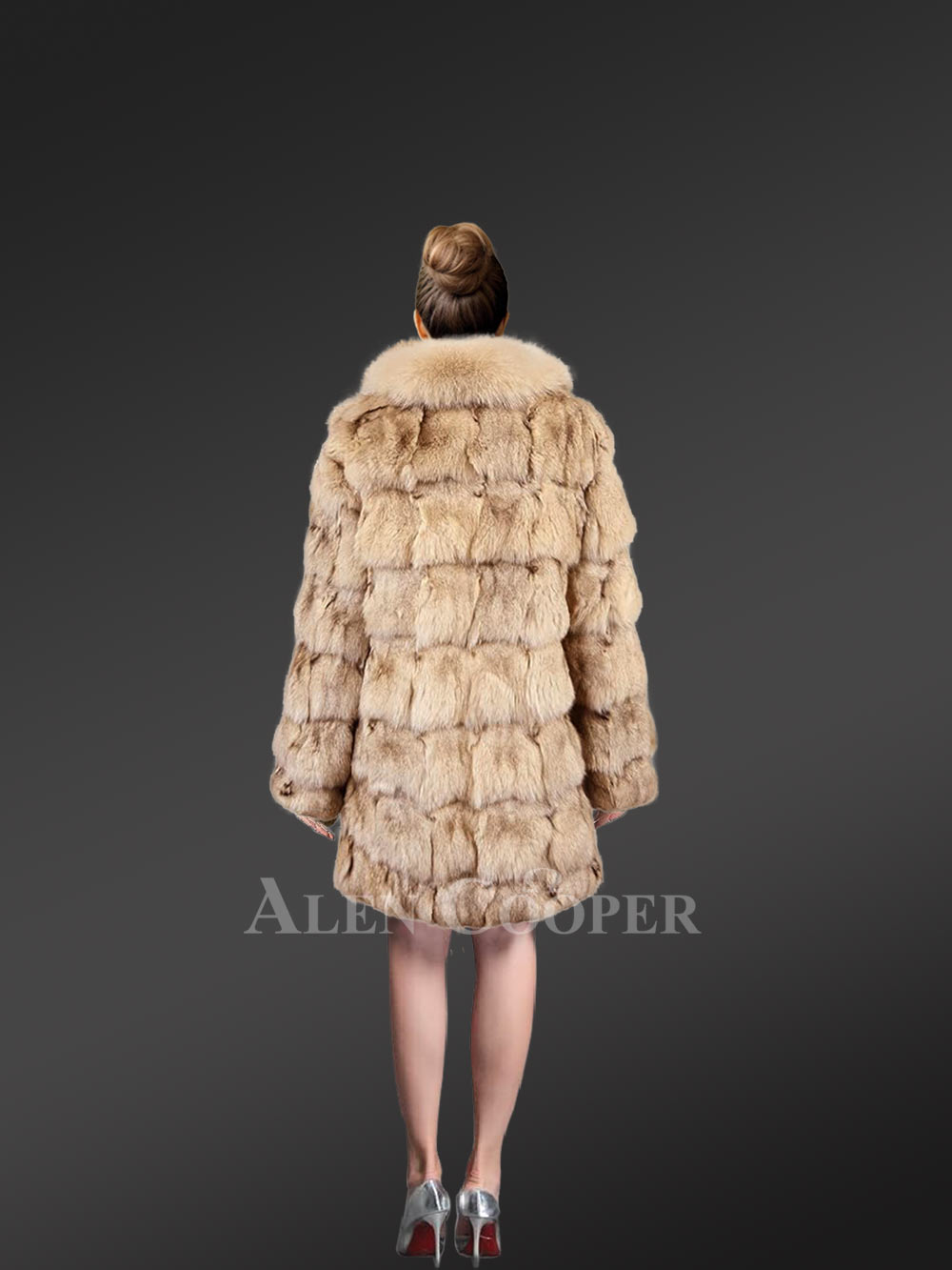 Women’s Mid Length Fox Fur coat with Fox Fur Collar