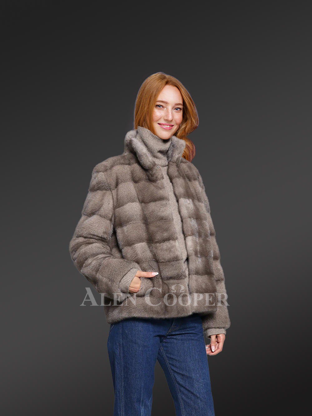 Turtle Neck Mink Coat In Ash Grey-An Absolute Elegant Wear