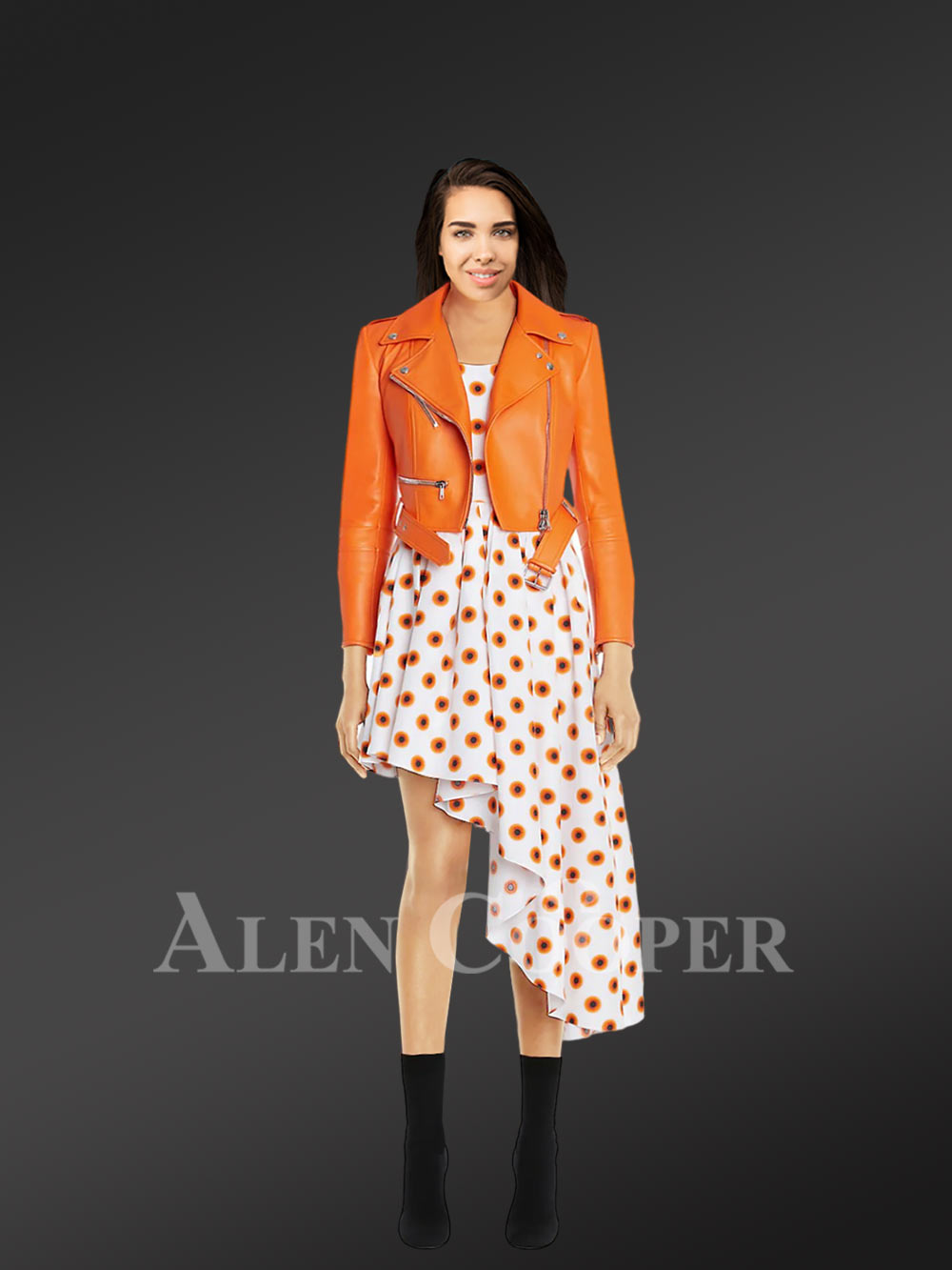 Women’s Goose Down Leather Jacket With Collared Neck And Hood