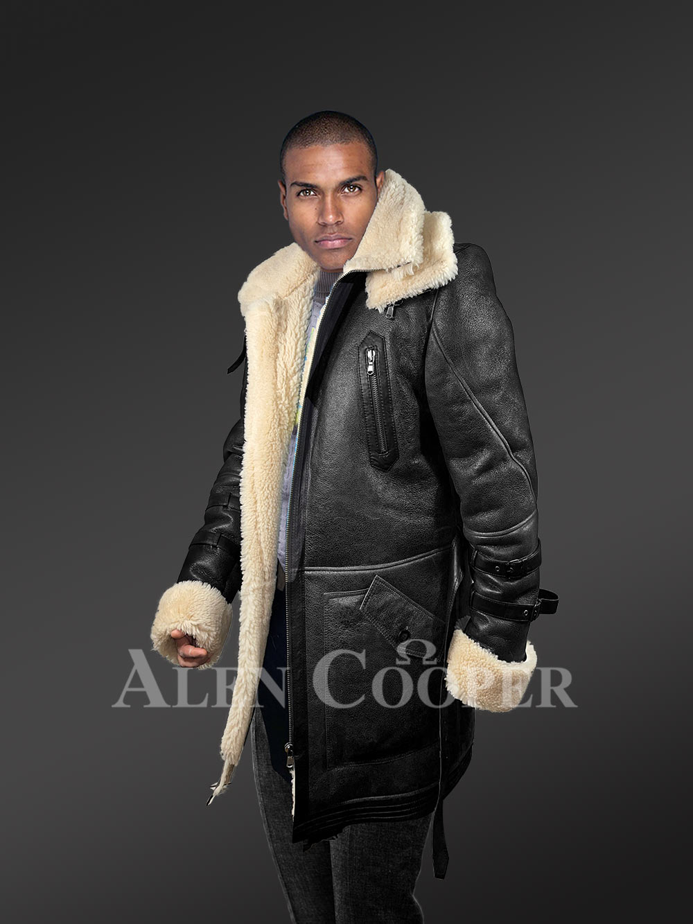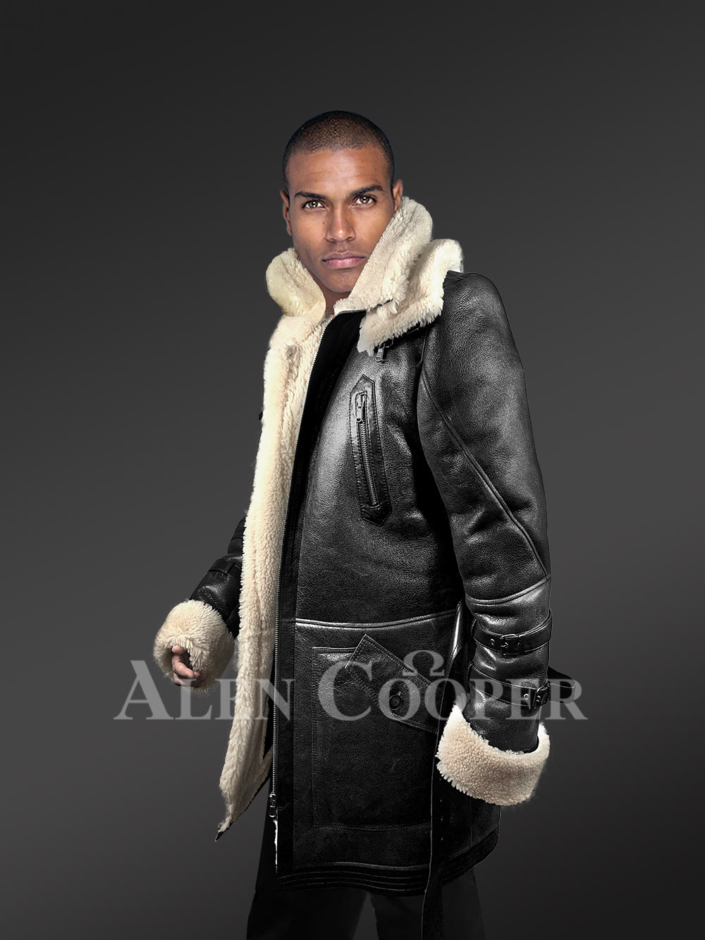 Men’s Authentic Rabbit Fur Coat in Black with Hood
